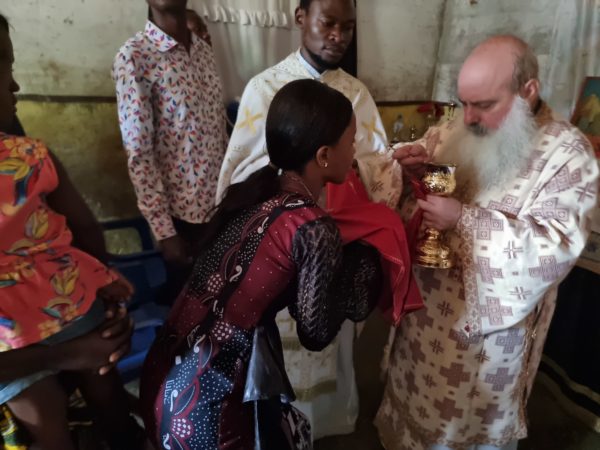 Στην Mbandaka η Ορθοδοξία έφθασε μόλις πριν επτά μήνες και από τότε οργανώθηκε η πρώτη ενορία κατά αρχήν σε ενοικιαζόμενο σπίτι εντός του οποίου ο απεσταλμένος από την Μητρόπολη ιερεύς τελούσε όλες τις ακολουθίες και Θείες Λειτουργίες. Συντόμως ωστόσο αγοράστηκε οικόπεδο με κατοικία, όπου πλέον ιερουργεί ο εφημέριος, ενώ στον χώρο αυτό θεμελιώθηκε με την νυν επίσκεψη του Μητροπολίτου ο πρώτος Ναός στην περιοχή του ισημερινού.