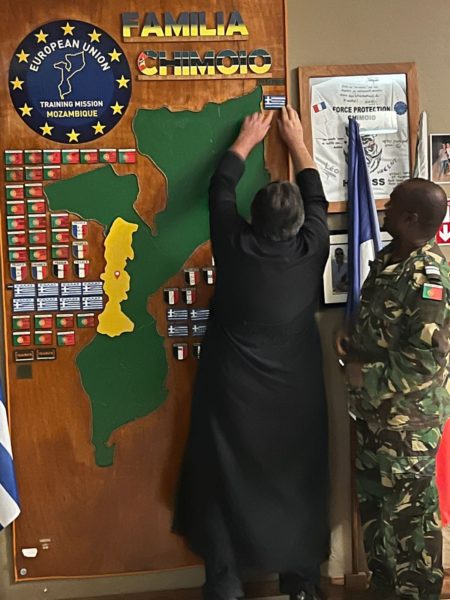Ποιμαντική επίσκεψη του Μητροπολίτη Ζάμπιας κ. Ιωάννη στη βάση της Πολυεθνικής στρατιωτικής εκπαιδευτικής αποστολής κυανοκράνων EUTM-Moz (European Union Training Mission in Mozambique) στο Chimoio, την πρωτεύουσα της επαρχίας Manica της Μοζαμβίκης.