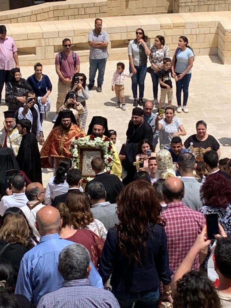 Πριν το τέλος της Θείας Λειτουργίας, ο Μητροπολίτης Μέμφιδος κ. Νικόδημος μίλησε για τα μαρτύρια και την αντοχή που επέδειξε στα δεινά που υπέστη ο Άγιος Γεώργιος.
