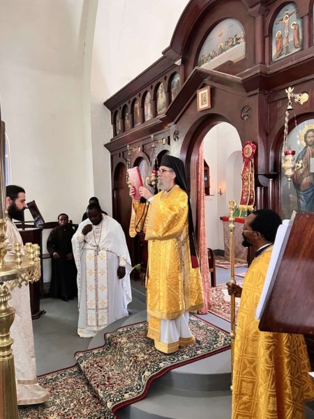 Ο Θεοφιλέστατος Επίσκοπος Αρούσας και Κεντρικής Τανζανίας κ. Αγαθόνικος, πλαισιούμενος από κληρικούς της Επισκοπής, τέλεσε τη Θεία Λειτουργία στον Ιερό Ναό Ευαγγελισμού της Θεοτόκου Αρούσας την Κυριακή του Ασώτου 12 Φεβρουαρίου 2023.