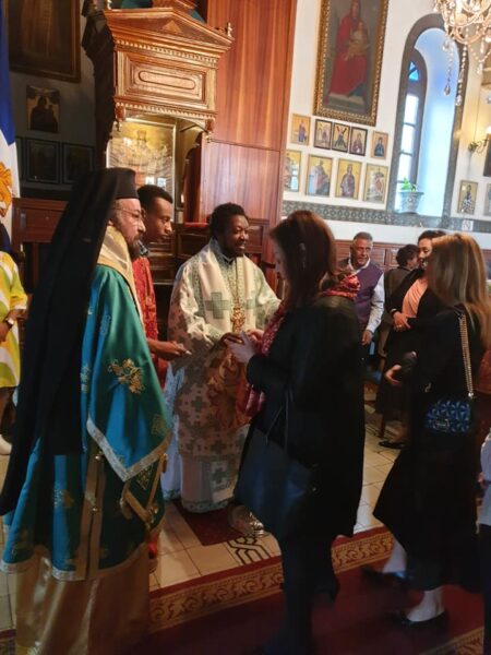 Ο Σεβασμιώτατος προσέφερε στον Θεοφιλέστατο σταυρό ευλογίας, για να αγιάζει τους Ορθοδόξους πιστούς της Επαρχίας του. Παρόντες η Επιτετραμμένη της Ελλάδος κ. Βασιλική Σκαλιστήρα, ο Πρόεδρος της Ελληνικής Κοινότητος κ. Δημήτριος Συκάς.