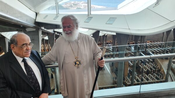 «Όπου βρεθώ στα παγκόσμια φόρουμ, πάντοτε μιλώ για τη Βιβλιοθήκη της Αλεξάνδρειας», τόνισε ο Πατριάρχης Αλεξανδρείας και πάσης Αφρικής κ.κ. Θεόδωρος, δεχόμενος τη θερμή υποδοχή από τον Δ/ντή της Αλεξανδρινής Βιβλιοθήκης Δρ Μουστάφα Ελ Φέκι.