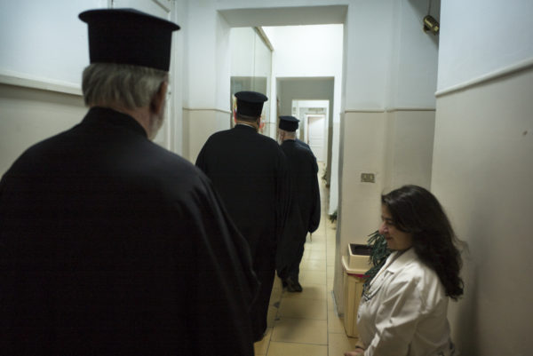 Στην υποδοχή του Πατριάρχη Αλεηανδρείας, στον χώρο του Νοσοκομείου ήταν ο Πανοσιολογιότατος Αρχιμανδρίτης π. Ιωακείμ, ο Κοινοτικός Επίτροπος και Προϊστάμενος της Εφορίας Πρόνοιας της Ε.Κ.Κ. κ. Ανδρέας Γιόσρι όπως επίσης η Διευθύντρια του Γηροκομείου κα. Αγγέλα Χαραλαμποπούλου και η Αναπληρώτρια Διευθύντρια κα. Μάχα Ελ Γουακίλ.