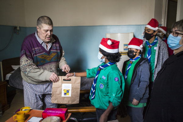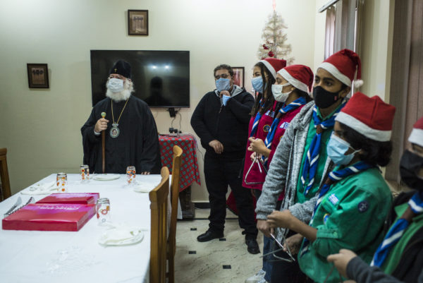 Ο Πρόσκοποι υπό την καθοδήγηση του Αρχηγού κ. Γιάννη Μελαχροινούδη και του Υπαρχηγού κ. Χρήστου Αντωνίου και εκπληρώνοντας με χαρά την «καλή τους πράξη» έδιναν σε όλους τους τρόφιμους δώρα και ανταλλάσσοντας ευχές και χαμόγελα.