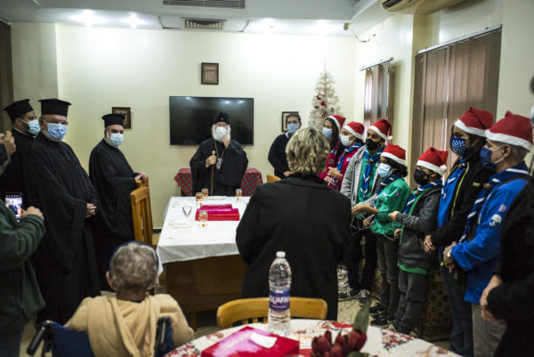 Μετά το χαρούμενο ξεκίνημα της Παραμονής των Χριστουγέννων με τα κάλαντα των Ελλήνων Προσκόπων, ο Μακαριώτατος Πατριάρχης Αλεξανδρείας κ.κ. Θεόδωρος Β κατευθύνθηκε στο Γηροκομείο της Ελληνικής Κοινότητας που στεγάζεται στο Ελληνικό Νοσοκομείο στο Κάιρο.