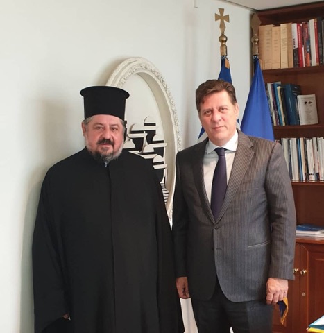 Στην επίσκεψη που πραγματοποιήθηκε στο Υπουργείο Εξωτερικών,ο Σεβασμιώτατος συνοδευόταν από τον Πρόεδρο, του Ελληνο-Αφρικανικού Επιμελητηριου Εμπορίου και Ανάπτυξης κ. Σωτήρη Μουσούρη.