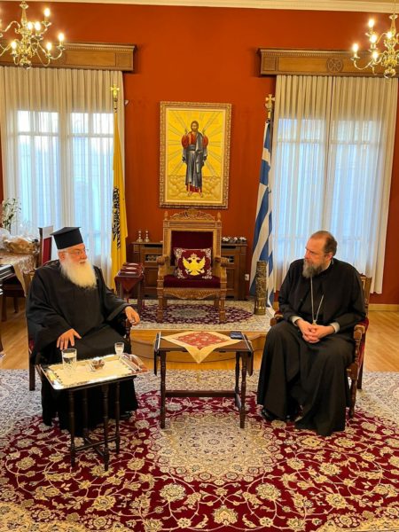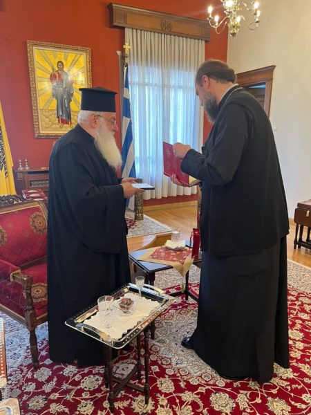 Μετά τη συζήτηση ακολούθησαν οι ευχές για καλή ποιμαντορία στον νέο Μητροπολίτη Θεσσαλονίκης και η ανταλλαγή αναμνηστικών δώρων με αφορμή την επίσκεψη.