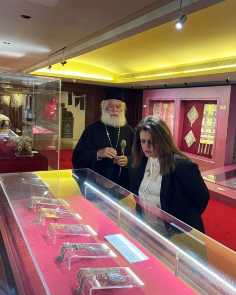 Επακολούθησε ανταλλαγή αναμνηστικών δώρων, καθώς και περιήγηση της κ. Ελ Γκέντι στους χώρους του Πατριαρχικού Μεγάρου από τον Μακαριώτατο.