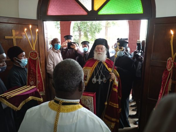 Σήμερα το πρωί ο Μακαριώτατος έγινε δεκτός από τον Τοποτηρητή της Ιεράς Μητροπόλεως Καμπάλας, Μητροπολίτη Γέροντα Ναϊρόμπι κ. Μακάριο, στον Καθεδρικό Ναό του Αγίου Νικολάου όπου τελέστηκε Δοξολογία για την άφιξή του.