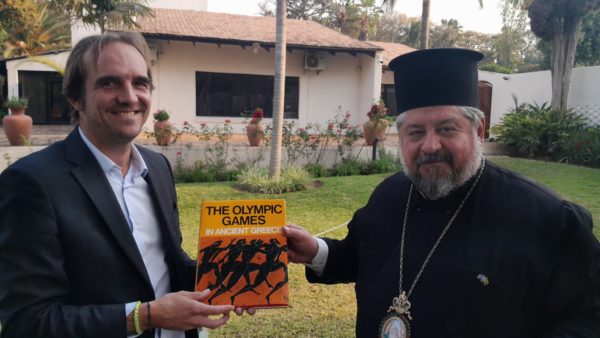 Ο θρησκευτικός ηγέτης της Ορθόδοξης Εκκλησίας στη Ζάμπια εξέφρασε την ευγνωμοσύνη του προς τον Γάλλο διπλωμάτη για τη συνεχή υποστήριξή του κατά τη διοργάνωση του δεκαπενθήμερου προγράμματος Ολυμπιακής Παιδείας που πραγματοποιήθηκε στη Ζάμπια τον προηγούμενο μήνα.