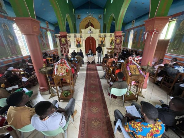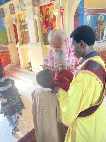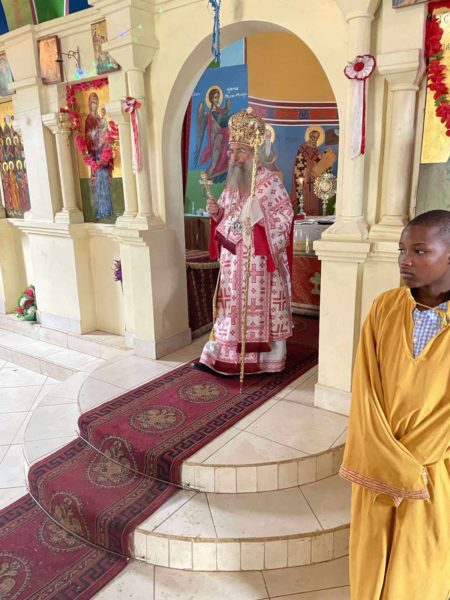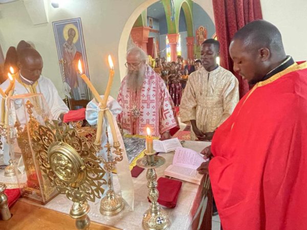 Το πρωί τελέσθηκε Θεία Λειτουργία στην οποία προεξήρχε ο Επίσκοπος κ. Χρυσόστομος και συλλειτούργησαν οι Ιερείς π. Σπυρίδων Κaizile nge, π. Ιωσήφ Joshephat και ο διάκονος Ντα τιος Ponsian.