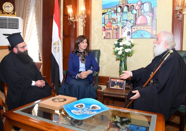 Θερμή ήταν η υποδοχή που επεφύλαξε στις 26 Δεκεμβρίου 2021 η Υπουργός Διασποράς και Μεταναστευτικής Πολιτικής της Αιγύπτου κα Ναμπίλα Μάκραμ στον Πατριάρχη Αλεξανδρείας και πάσης Αφρικής κ.κ. Θεόδωρο.