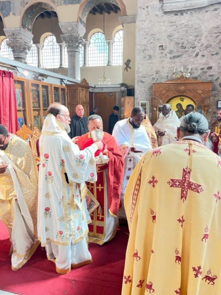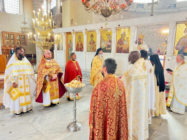 Την Κυριακή 22 Ιουνίου, μνήμη των Αγιορειτών Πατέρων, με την άδεια και ευλογία του οικείου ποιμενάρχου, Παναγιωτάτου Μητροπολίτου Θεσσαλονίκης κ. Φιλοθέου, ο Σεβασμ. κ. Δανιήλ τέλεσε Αρχιερατική Θεία Λειτουργία στον ιστορικό Ιερό Ναό Παναγίας Αχειροποιήτου, με συλλειτουργούς κληρικούς από την Ακτή Ελεφαντοστού, την Ουγκάντα και την Ελλάδα.