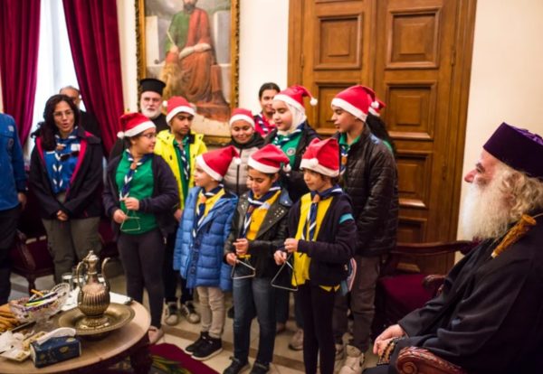 Κάθε χρονιά, η χαρά του Πατριάρχη το πρωί της παραμονής των Χριστουγέννων είναι τα πατροπαράδοτα κάλαντα της Πατρίδας μας που με μεγάλη προσμονή και αγάπη ακούει από τους Προσκόπους του Καΐρου.
