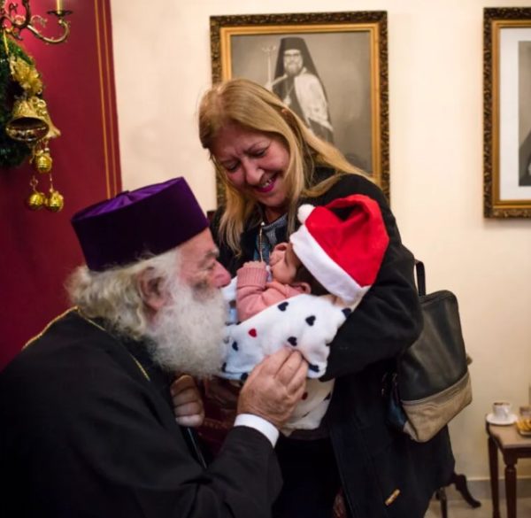 Με πολλή χαρά ο Μακαριώτατος έδωσε και την ευχή του στην γλυκύτατη νεογέννητη κόρη του Περιφεριακού Έφορου Αποδήμων κ. Ανδρέα Γίοσρι και της βαθμοφόρου των Προσκόπων κ. Ναταλί Σαΐντ. Η μικρούλα, που από ότι μάθαμε θα πάρει το όνομα «Ζωή», φορούσε και αυτή ένα γιορτινό κόκκινο καπέλο, όπως όλοι οι Πρόσκοποι και βίωνε τα πρώτα της κάλαντα, πότε στην αγκαλιά της γιαγιάς της, κας Κωνσταντίνας Γεδεών και πότε στην αγκαλιά των γονιών της.