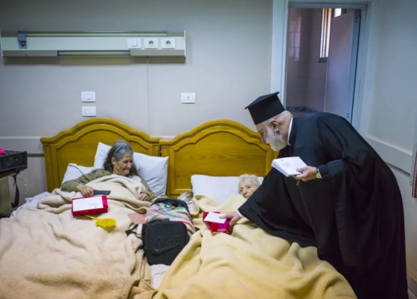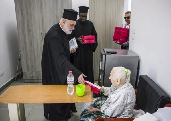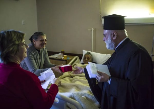 Για ακόμα μια φορά οι Πρόσκοποι πήραν την θέση τους για τα κάλαντα. Ήταν μια στιγμή συγκινητική, με τα τρίγωνα- κάλαντα να ηχούν και πάλι στους διαδρόμους του Γηροκομείου κάνοντας όλους, αλλά κυρίως τις δύο Ελληνίδες τρόφιμους να αναθαρρήσουν γεμάτες χαρά ακούγοντας την Χριστουγεννιάτικη μελωδία. Ο Μακαριώτατος Πατριάρχης Θεόδωρος μοίρασε στην συνέχεια μαζί με τον Σεβασμιώτατο Μητροπολίτη Μέμφιδος και Πατριαρχικό Επίτροπο Καΐρου Νικόδημο ευχές και δώρα σε όλους τους τρόφιμους του Γηροκομείου, ενώ ακολούθησε κέρασμα προς όλους για το καλό της ημέρας.