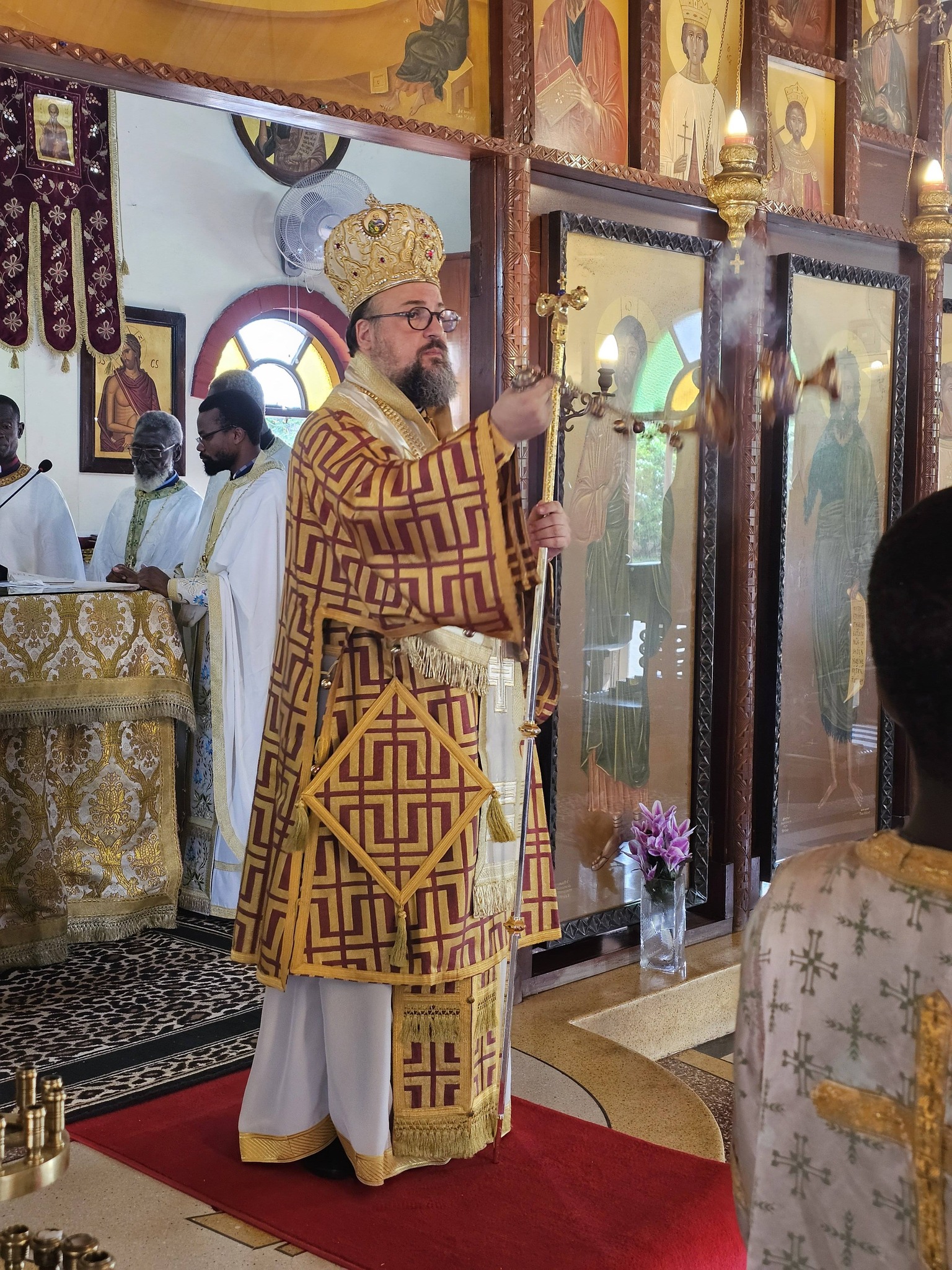 Η πανηγυρική Θεία Λειτουργία τελέστηκε εις μνήμην του Αγίου ενδόξου Προφήτου Δανιήλ και του Αγίου Διονυσίου του εκ Ζακύνθου. Συλλειτούργησαν όλοι οι κληρικοί της Γκάνας, συμμετέχοντας με ενότητα και αγάπη στην εορτή του Ποιμενάρχου τους.