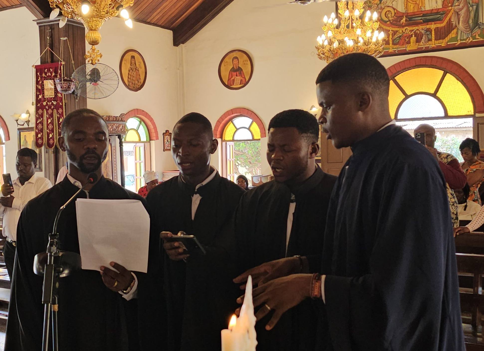 Την Ιερά Ακολουθία ελάμπρυναν με τη μελωδική και κατανυκτική ψαλμωδία τους καλλικέλαδοι ιεροψάλτες από την Ιερά Επισκοπή Μπενίν.