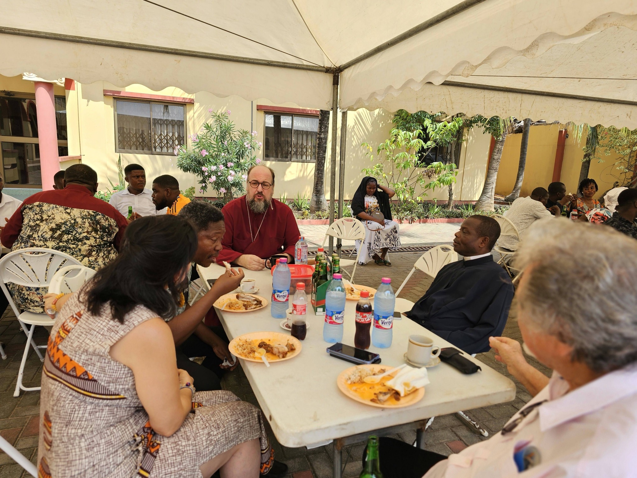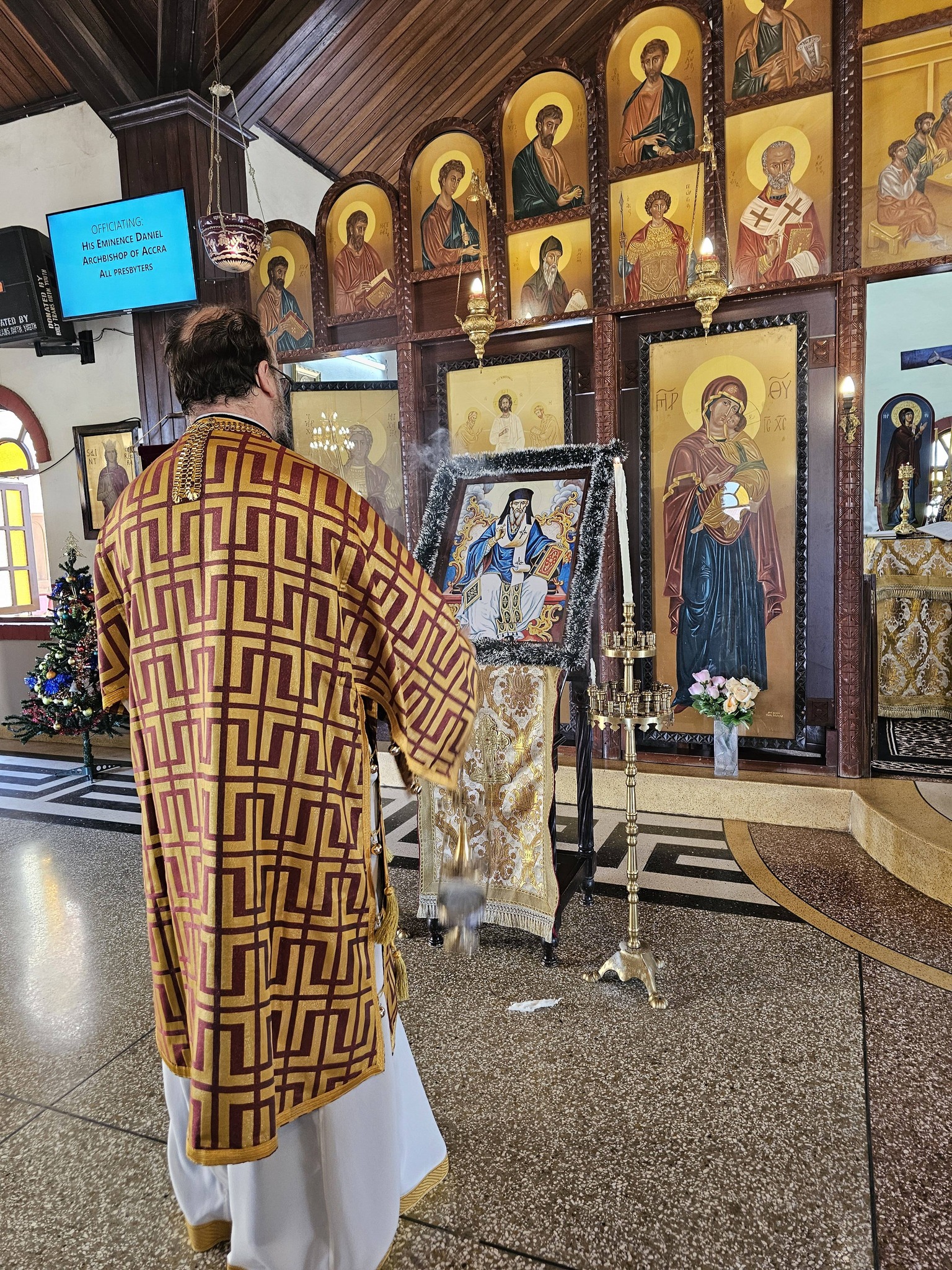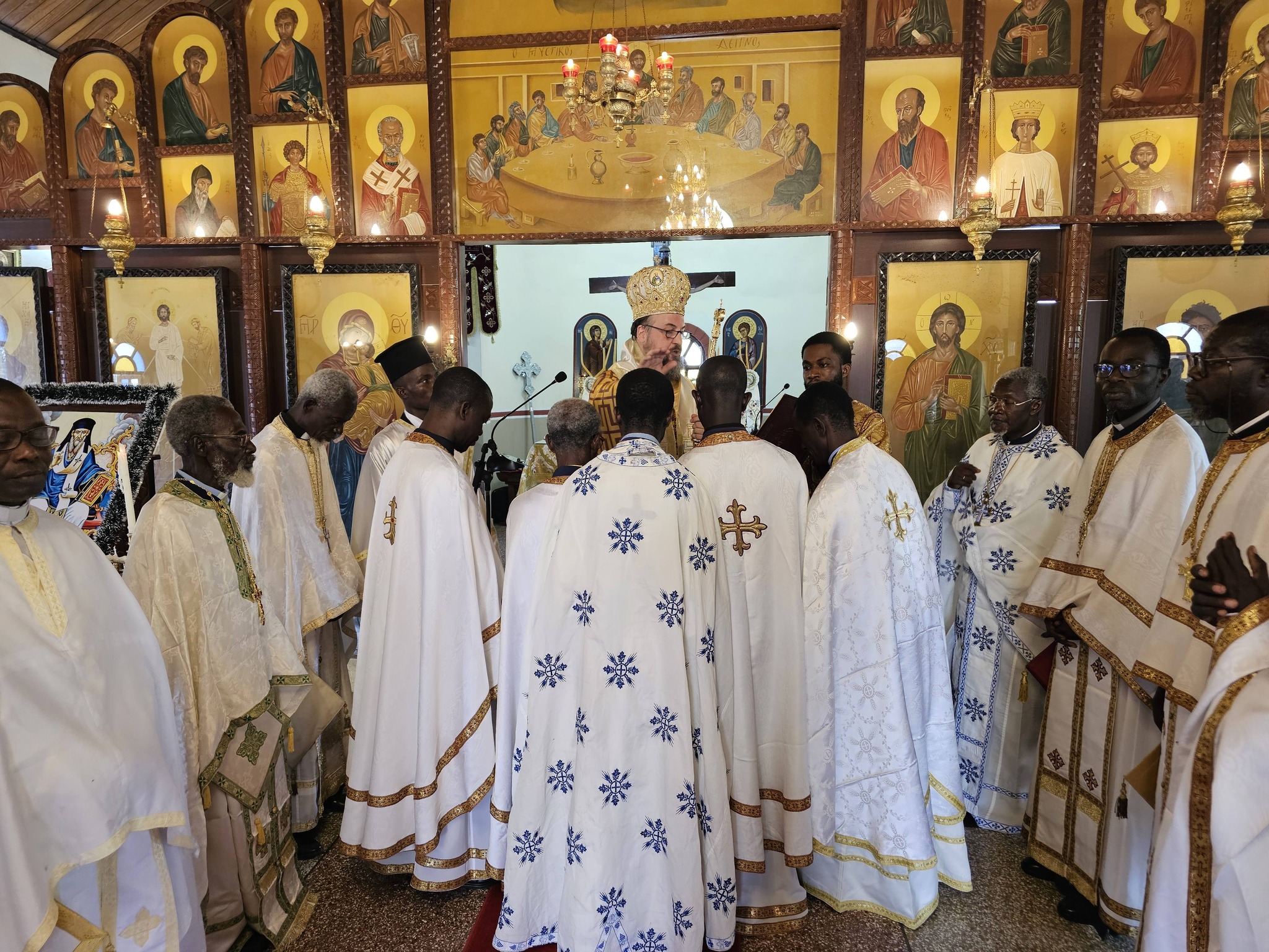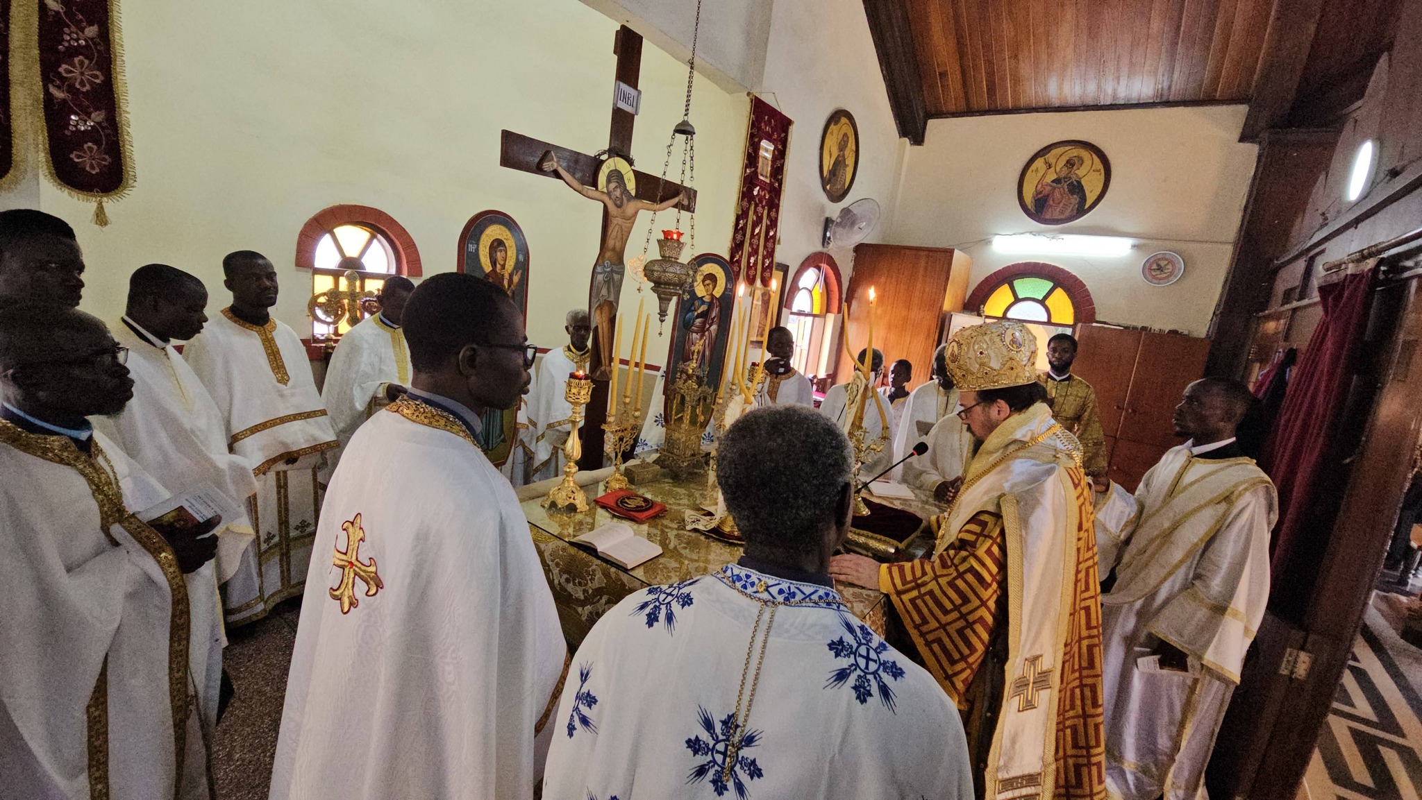 Η πανηγυρική Θεία Λειτουργία τελέστηκε εις μνήμην του Αγίου ενδόξου Προφήτου Δανιήλ και του Αγίου Διονυσίου του εκ Ζακύνθου. Συλλειτούργησαν όλοι οι κληρικοί της Γκάνας, συμμετέχοντας με ενότητα και αγάπη στην εορτή του Ποιμενάρχου τους.