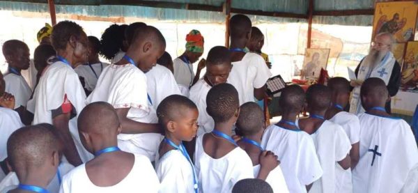 Το πρωί έγινε σε ένα πρόχειρο ναό η Θεία Λειτουργία, προϊσταμένου του Θεοφ. Επισκόπου Μπουκόμπας και Δυτικής Τανζανίας κ. Χρυσοστόμου και συμπαρισταμένων του π. Ιωακείμ Mponto και του νέου διακόνου Νεκτάριου Kiiza.