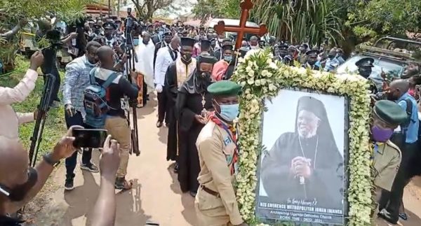 Το σκήνωμα του μακαριστού Μητροπολίτη ετάφη δίπλα στον τάφο του προκατόχου του, Μητροπολίτου κυρού Θεόδωρου, ενώ η κηδεία έγινε δημοσία δαπάνη και ο αποχαιρετισμός με τιμές εθνικού ήρωα, κάτι που αποφάσισε ως φόρο τιμής η ίδια η κυβέρνηση της Ουγκάντας.