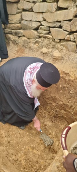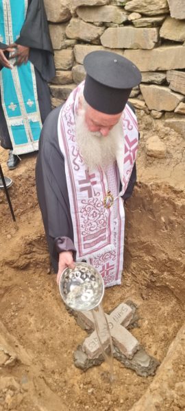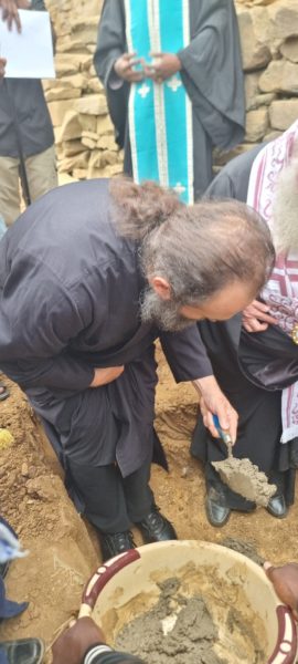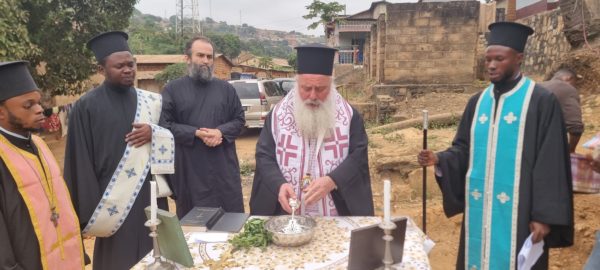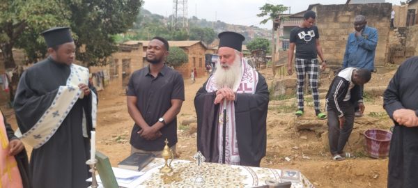 Ήρθε όμως η στιγμή που μια ευλαβής κυρία από την Ελλάδα ανέλαβε την χρηματοδότηση αγοράς οικοπέδου και ανεγέρσεως του Ιερού Ναού. Έτσι το απόγευμα της Κυριακής 20 Ιουλίου 2025 ο Σεβασμιώτατος Μητροπολίτης Κινσάσας κ. Θεοδόσιος συνοδευόμενος από την συνοδεία του μεταξύ αυτών και του Αγιορείτου Μοναχού Κουκουζέλους τέλεσε την ακολουθία θεμελιώσεως του Ιερού Ναού του Αγίου Γεωργίου. Παρόντες ο Αρχηγός της συνοικίας και κάποιοι από τους πρώτους πιστούς.