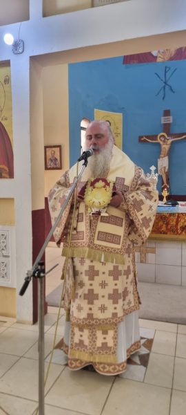 Ευχαρίστησε την δωρήτρια του Ιερού αυτού Ναού. Μίλησε για τον Άγιο Γεώργιο και για την ευλογία που αποτελεί για την περιοχή η θεμελίωση του ναού του. Επίσης αναφέρθηκε στο ότι η μοναδική κανονική Εκκλησία της Αφρικής είναι το Πατριαρχείο Αλεξάνδρειας και πάσης Αφρικής.