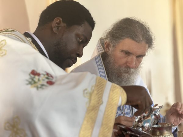 Η συγκεκριμένη ημέρα, όμως, επεφύλαξε ακόμη μία μεγαλύτερη χαρά για όλους τους παρευρισκόμενους. Στην πανηγυρική Θεία Λειτουργία ο Θεοφιλέστατος Επίσκοπος Αρούσας και Κεντρικής Τανζανίας κ. Αγαθόνικος τέλεσε, κατ’ εντολή του Μακαριωτάτου Πατριάρχου Αλεξανδρείας και πάσης Αφρικής κ.κ. Θεοδώρου Β´, την εις Διάκονον χειροτονία του Μοναχού Ειρηναίου Απράκου, με καταγωγή από την Γκάνα της Δυτικής Αφρικής. Ο πατήρ Ειρηναίος σπούδασε θεολογία στο Αριστοτέλειο Πανεπιστήμιο Θεσσαλονίκης και εδώ και ένα χρόνο διακονεί την ιεραποστολή στην Κεντρική Τανζανία. Η χαρά όλων ήταν απερίγραπτη! Όλοι οι πιστοί με μια φωνή αναφωνούσαν Anastahili (Άξιος!), ενώ δεν έλειψαν και τα χειροκροτήματα και οι ζητοκραυγιές με τον ανεπανάληπτο αφρικάνικο χαρακτήρα.