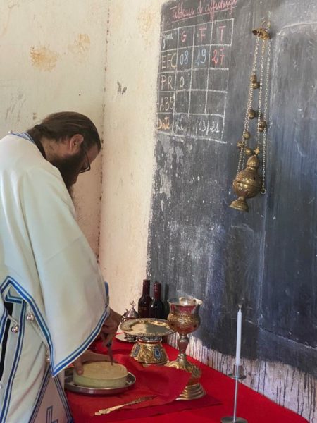 Ο Θεοφιλέστατος Επίσκοπος Τολιάρας και Νοτίου Μαδαγασκάρης κ. Πρόδρομος κατά την εορτή της Αναλήψεως του Κυρίου πραγματοποίησε περιοδία στην οποία βρέθηκε σε μια περιοχή που δεν είχε Ναό. Με ανάρτησή του στα Μέσα Κοινωνικής Δικτύωσης ανέφερε ότι μετέτρεψαν το σχολείο σε αυτοσχέδιο θυσιαστήριο.