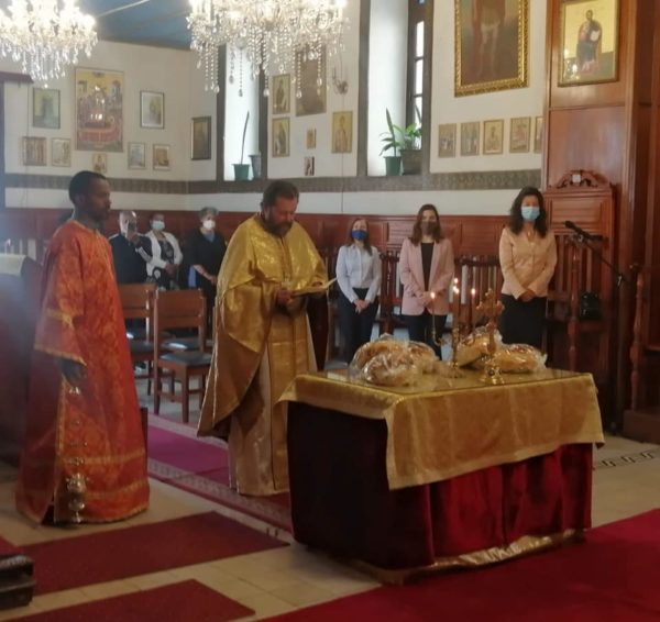 Με την τιμητική παρουσία της Ελληνίδος Πρέσβειρας στην Αιθιοπία, κ. Άννας Φάρρου, της Διευθύνουσας του Προξενικού Γραφείου κ. Όλγας Τζωρτζάτου, του Προέδρου της Ελληνικής Κοινότητος κ. Δημητρίου Συκά, του Προέδρου της Ελληνικής Αθλητικής Ενώσεως “Ολυμπιακός” κ. Αθανασίου Ρούσσου, Διευθυντών, εκπαιδευτικών και μαθητών των Ελληνικών Κοινοτικών Σχολείων και ολίγων πιστών που προσήλθαν στο Ναό, αφού λόγω της πανδημίας δεν επιτρέπεται η παρουσία πολλών εντός αυτού.