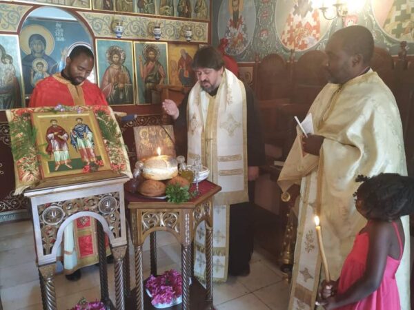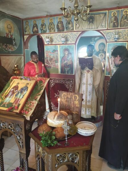 Στη μακρινή Ζάμπια και στο Ιερό Παρεκκλήσιο της Ιεράς Μητροπόλεως Ζάμπιας στο Kalundu τελέστηκε Θεία Λειτουργία μετ’ αρτοκλασίας για την εορτή των Αγίων Αναργύρων Κοσμά και Δαμιανού την Τετάρτη 1η Ιουλίου 2020.