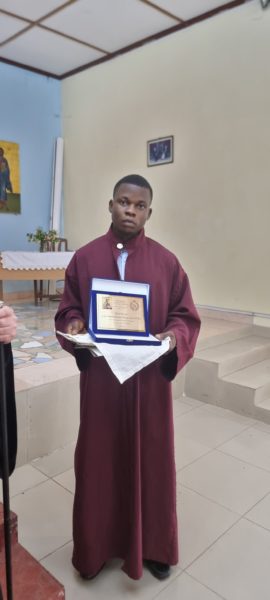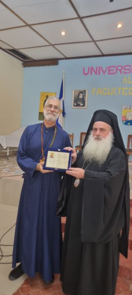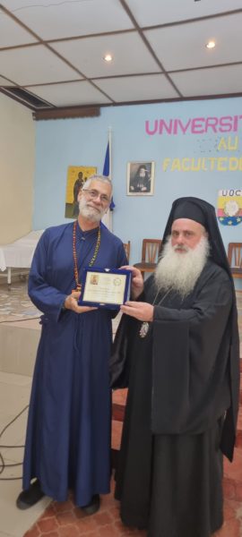 Ο Σεβασμιώτατος Μητροπολίτης Κινσάσας κ. Θεοδόσιος αφού με πολλούς συγκινητικούς λόγους ευχαρίστησε τον Ιεραποστολικό Σύλλογο (OCMC) και τον Πρόεδρο του π. Μαρτίνο επέδωσε Τιμητική πλακέτα με την οποία εκφράζει την ευγνωμοσύνη της Μητροπόλεως για την πολλαπλή βοήθεια και υποστήριξη τους στην Ιερά Μητρόπολη Κινσάσας και ιδιαιτέρως στην Θεολογική Σχολή.