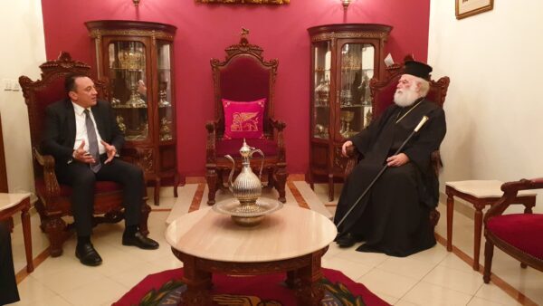 Ο υφυπουργός αρμόδιος για θέματα Αποδήμου Ελληνισμού και Εκκλησιαστικών Θεμάτων επισκέφθηκε τον Προκαθήμενο του Δευτερόθρονου Πατριαρχείου στην έδρα της Πατριαρχικής Επιτροπείας Καϊρου. Ο Πατριάρχης Θεόδωρος υποδεχόμενος τον υφυπουργό του έδωσε την ευλογία του για το έργο του. Αναφέρθηκε δε στην πολυήμερη αποστολή που ξεκινά από τα ξημερώματα της Παρασκευής 14 Φεβρουαρίου στα βάθη της Αφρικής.