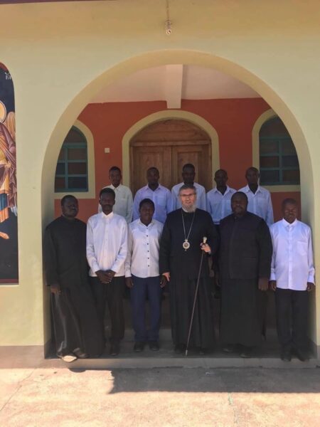 Ο Θεοφιλέστατος Επίσκοπος Αρούσας και Κεντρικής Τανζανίας κ. Αγαθόνικος με υποψήφιους κληρικούς κατά τη διάρκεια επιμορφωτικού σεμιναρίου.