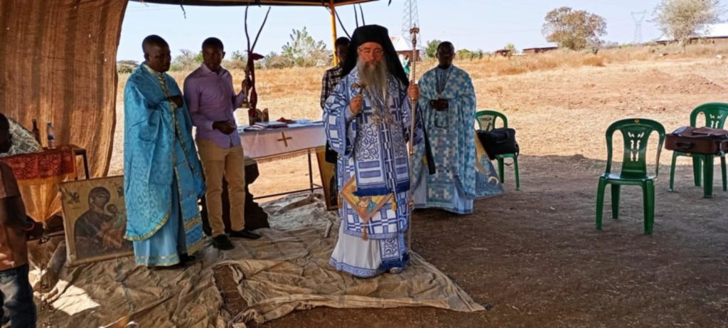 Η Θεία Λειτουργία τελέσθηκε στο οικόπεδο που έχει αγορασθεί, από Κυπρίους φίλους της Ιεραποστολής, σε ένα αντίσκηνο κάτω από μια τέντα, με τον αέρα να φυσά απ’ όλες τις πλευρές. Όμως εμείς ζούσαμε με κατάνυξη τη γιορτή, γιατί νιώσαμε την παρουσία και την παρηγοριά του Αγίου εδώ στο μικρό ποίμνιο του.