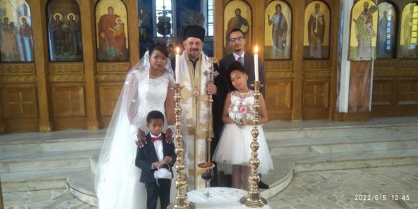 Το μυστήριο τέλεσε ο Σεβασμιώτατος Μητροπολίτης Ζάμπιας κ Ιωάννης ενώ το ζευγάρι, πάντρεψε η μικρή Φίλιππα Μπελέζα.