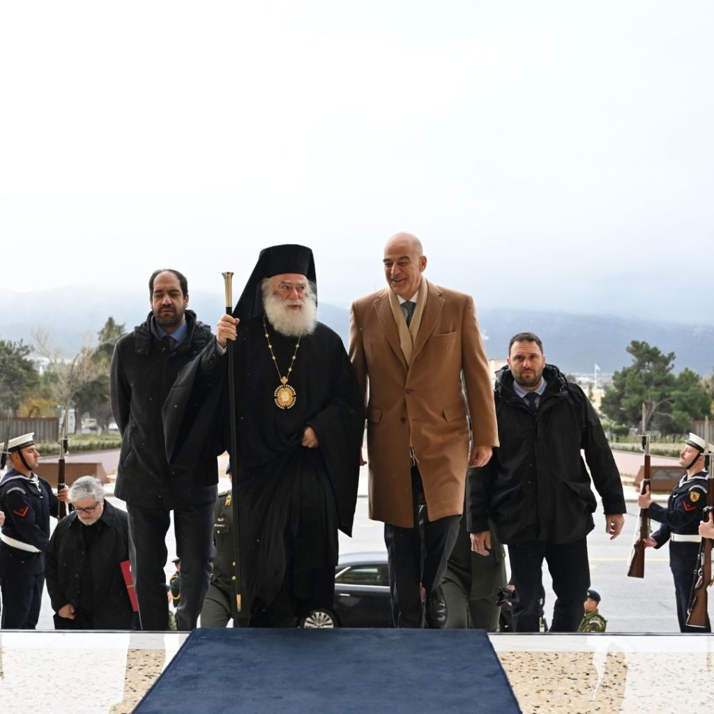 Ο Προκαθήμενος του Αλεξανδρινού Θρόνου έγινε δεκτός από τον Υπουργός, Νίκο Δένδια, και τον Υφυπουργό Εθνικής Άμυνας, Γιάννη Κεφαλογιάννη.