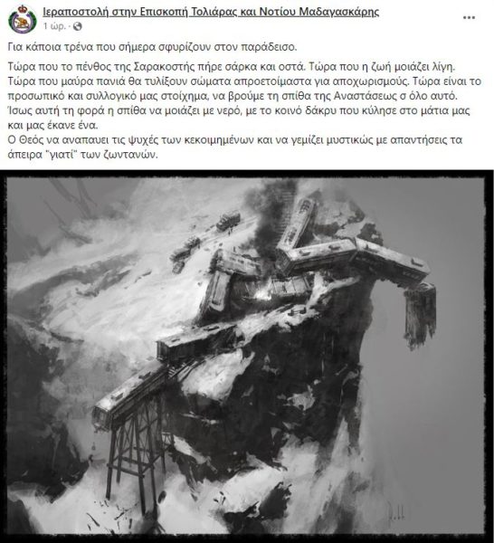 Στην εθνική τραγωδία στα Τέμπη που έχει βυθίσει στο πένθος τη χώρα μας από χθες αναφέρεται σε ανάρτησή του σε μέσο κοινωνικής δικτύωσης ο Επίσκοπος Τολιάρας και Νοτίου Μαδαγασκάρης κ. Πρόδρομος.