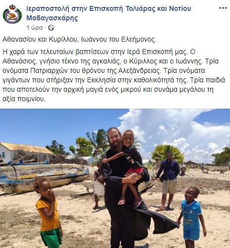 “Η χαρά των τελευταίων βαπτίσεων στην Ιερά Επισκοπή μας” γράφει ο Θεοφιλέστατος Επίσκοπος Τολιάρας και Νοτίου Μαδαγασκάρης, κ. Πρόδρομος, σε επίκαιρη ανάρτησή του.