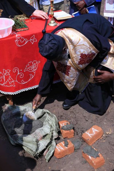 Ακολούθως τέλεσε τον Αγιασμό θεμελιώσεως του νέου Ιερού Ναού της τοπικής Ενορίας, αφιερωμένου στον Άγιο Απόστολο και Ευαγγελιστή Μάρκο.