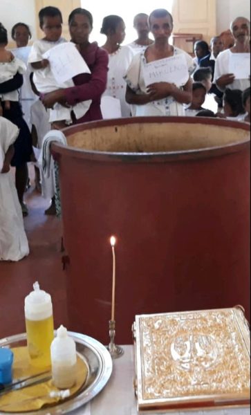 Το ιερό μυστήριο της βάπτισης γίνεται όλο και πιο συχνά, όλο και με περισσότερη λαχτάρα στην μητρόπολη Β. Μαδαγασκάρης πάντα με την παρουσία του σεβασμιωτάτου Μητροπολίτου μας κ.κ. Ιγνατίου. Η παρουσία του φλόγα ασβέστη, φάρος ορθοδοξίας.