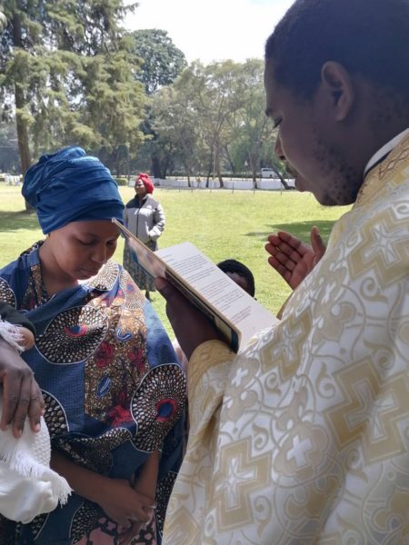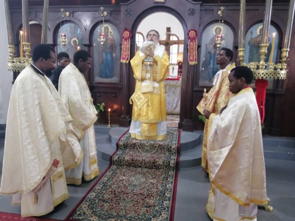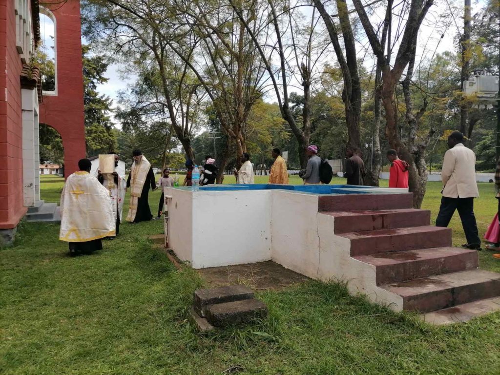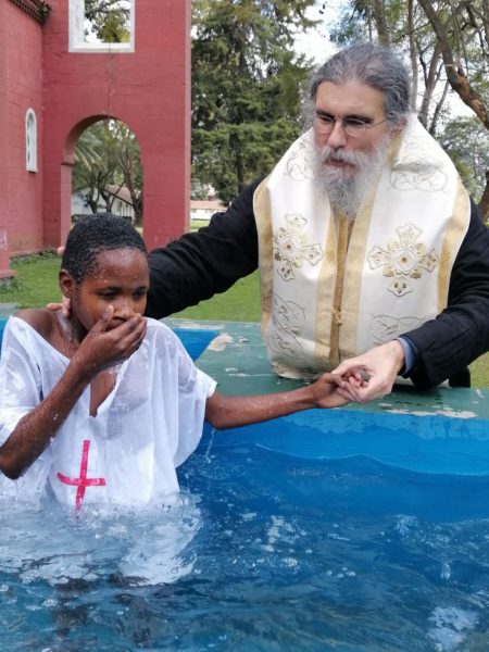 Πριν το Μυστήριο της Βάπτισης, τελέστηκε πανηγυρική αρχιερατική Θεία Λειτουργία προεξάρχοντος του Θεοφιλεστάτου Επισκόπου Αρούσας κ. Αγαθονίκου και ο μέγας πανηγυρικός εσπερινός της Πεντηκοστής, όπου διαβάστηκαν στα σουαχίλι οι ευχές της γονυκλισίας.