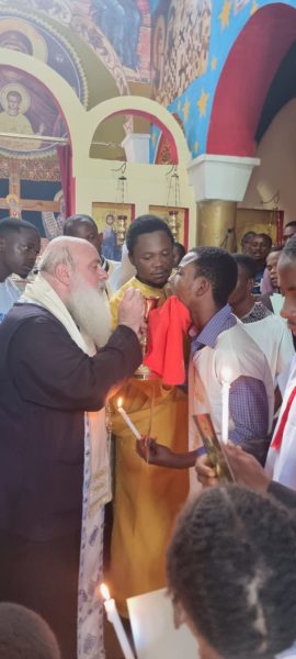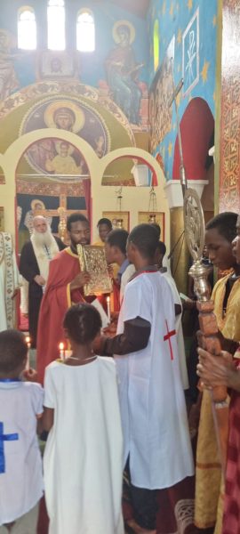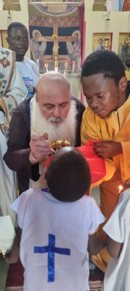 Ο Μητροπολίτης Κινσάσας κ. Θεοδόσιος, αμέσως μετά την τέλεση της Θείας Λειτουργίας και του Ιερού Μνημοσύνου του μακαριστού Ιεράρχου Ιγνατίου στην Θεολογική Σχολή, μετέβη στην γειτνιάζουσα ενορία της Αγίας Βαρβάρας για να τελέσει το μυστήριο του Βαπτίσματος τόσο μελών της ενορίας όσο και τριών φοιτητών της Θεολογικής Σχολής.