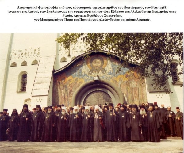 Επίσης το Πατριαρχείο Αλεξανδρείας έδωσε στη δημοσιότητα αναμνηστική φωτογραφία από τους εορτασμούς της χιλιετηρίδος του βαπτίσματος των Ρως το 1988 ενώπιον της Λαύρας των Σπηλαίων, με την συμμετοχή και του τότε Εξάρχου της Αλεξανδρινής Εκκλησίας στη Ρωσία, Αρχιμ. κ. Θεοδώρου, νυν Μακαριωτάτου Πάπα και Πατριάρχου Αλεξανδρείας και πάσης Αφρικής.
