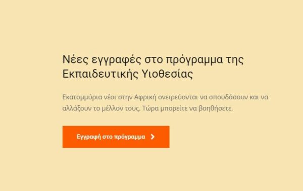 Τώρα, το πρόγραμμα είναι ανοιχτό για νέες εγγραφές. Αν κι εσείς θέλετε να βοηθήσετε έναν φοιτητή από την Κατάγγα του Κογγό να σπουδάσει, συμπληρώστε την φόρμα και θα επικοινωνήσουν άμεσα μαζί σας οι αρμόδιοι εκ της Αδελφότητος Ορθοδόξου Εξωτερικής Ιεραποστολής.