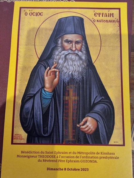 Ο π. Εφραίμ με την σειρά του με δάκρυα στα μάτια ευχαρίστησε υον Μητροπολίτη κ. Θεοδόσιο για την πολλαπλή αγάπη που έδειξε στο πρόσωπό του, τον μακαριστό Μητροπολίτη Κινσάσας κυρό Νικηφόρο από τον οποίο διδάχθηκε πολλά για την μοναχική ζωή καθώς τον Γέροντα Εφραίμ και την συνοδεία του οι οποίοι προσεύχονται για την Μητρόπολη Κινσάσας και την βοηθούν ποικιλοτρόπως.