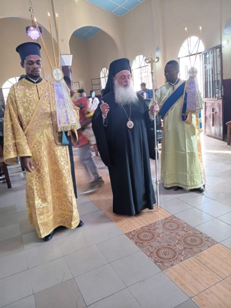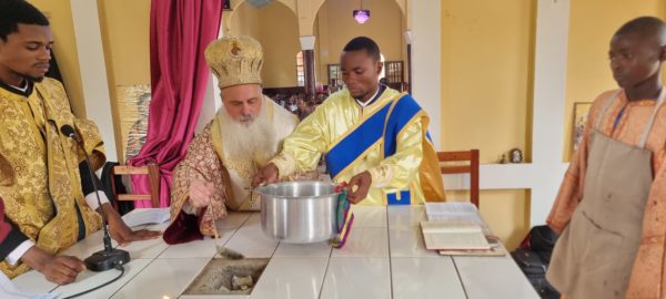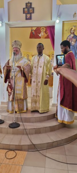 Ημέρα χαράς και ευφροσύνης για την Μπάντακα του Ισημερινού. Ο Μητροπολίτης Κινσάσας κ. Θεοδόσιος μετέβη εκεί με την συνοδεία του, αποτελούμενη από τον Αρχιμανδρίτη Εφραίμ, Αρχιερατικό Επόπτη, τον Διάκονο Ιερόθεο και τον Θεολόγο – Γραμματέα της Μητροπόλεως Ηλία, προκειμένου να εγκαινιάσει τον πρώτο ορθόδοξο ναό και να χειροτονήσει εις Πρεσβύτερο τον καταγόμενο από χωριό της Μπάντακα Διάκονο Αχίλλειο.