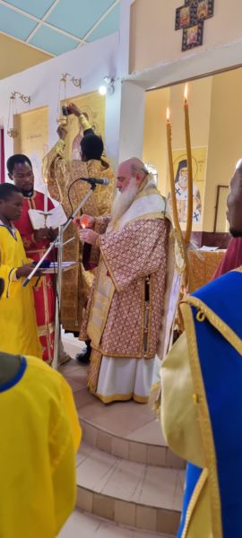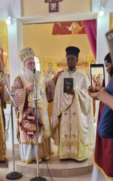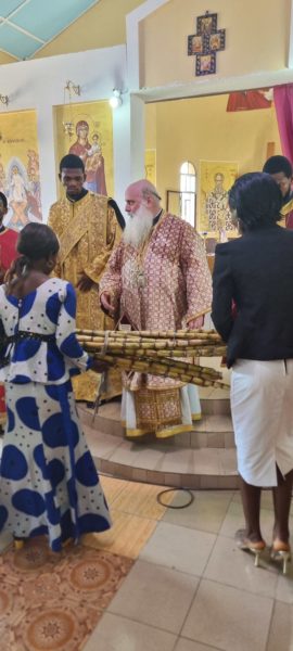 Στο τέλος της Θείας Λειτουργίας ο Μητροπολίτης χειροθέτησε Οικονόμο τον Ιερέα της ενορίας π. Σπυρίδωνα εκφράζοντας τις ευχαριστίες της Μητροπόλεως για την πνευματική εργασία που με φιλότιμο προσφέρει στην Μπάντακα και για την υπακοή που επιδεικνύει στην Εκκλησία και στον Επίσκοπο. Μετέφερε επίσης σε όλους τις πατρικές ευχές του Προκαθημένου της Αφρικής.