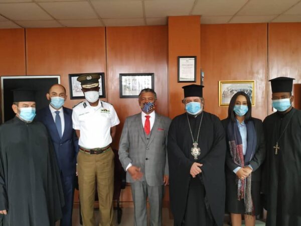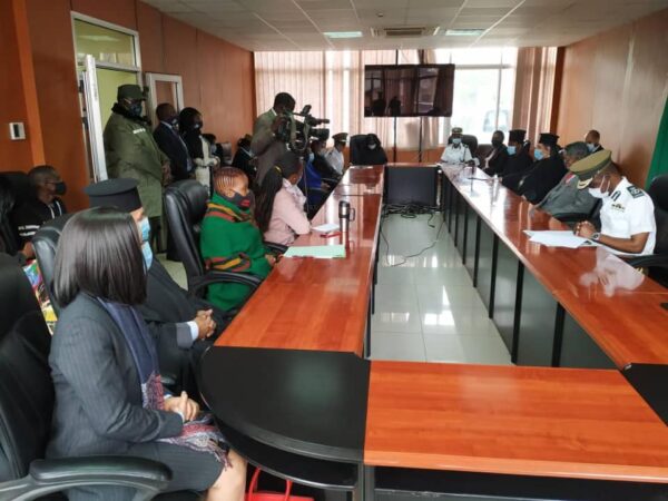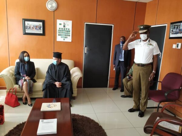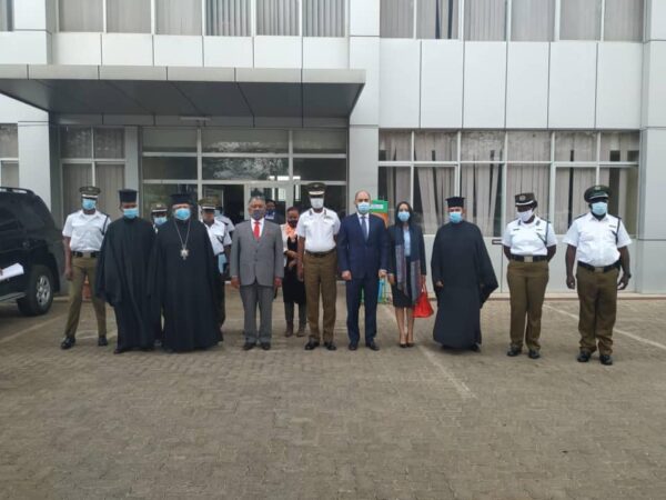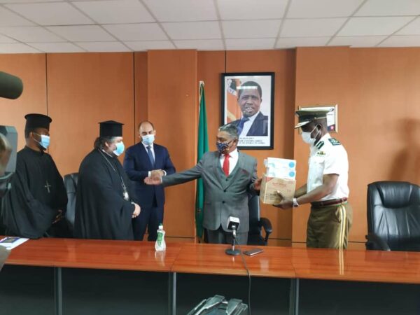 Ειδική τελετή παράδοσης-παραλαβής του υγειονομικού υλικού για την πρόληψη της διάδοσης του covid-19, που χορήγησε ο Σεβασμιώτατος Μητροπολίτης Ζάμπιας κ. Ιωάννης στον Επικεφαλής των Κεντρικών Σωφρονιστικών Εγκαταστάσεων της Λουσάκα, παρουσία του Υπουργού Δικαιοσύνης, Given Lubinda, πραγματοποιήθηκε σήμερα, 16 Ιουλίου 2020, στο Υπουργείο Δικαιοσύνης της Δημοκρατίας της Ζάμπιας.