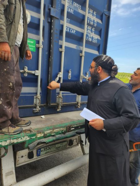 Το φορτηγό έφθασε από το λιμάνι της Τρίπολης, βόρεια της Βηρυτού, και τα δέματα παρέλαβε ο Αρχμανδρίτης Γεώργιος Γιακούμπ.